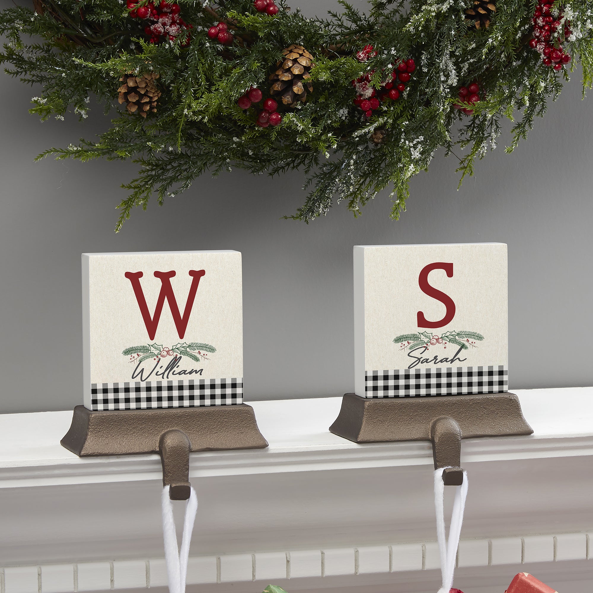 Festively decorate your fireplace mantel year after year with our Festive Foliage Personalized Christmas Stocking Holder. Each stocking holder is heavy enough to support the most abundantly-filled stockings without nails or screws that could damage your mantel.