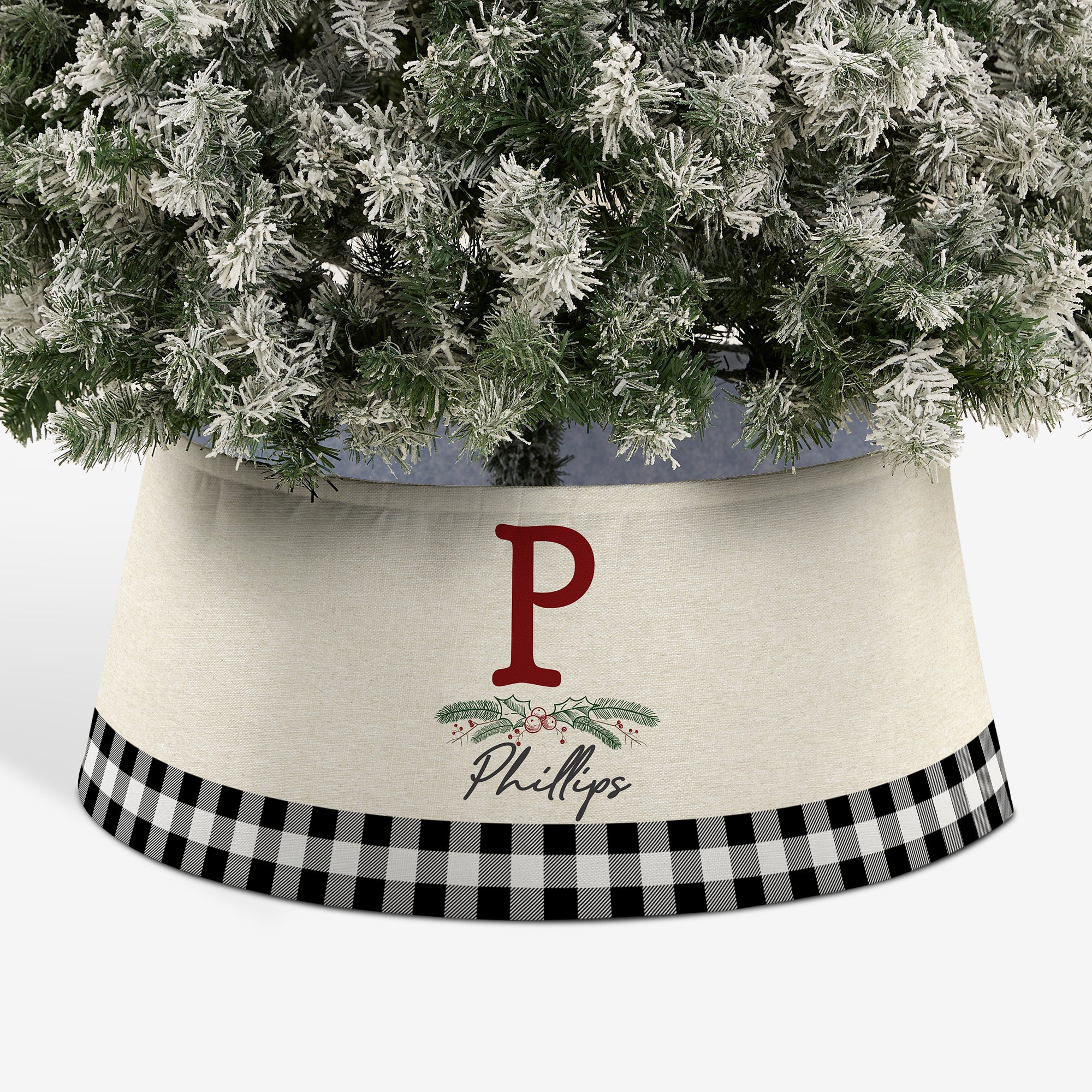 Add the perfect finishing touch to your tree this year with our Festive Foliage Personalized Christmas Tree Collar. A festive design keeps your tree stand neatly under wraps, creating a perfect backdrop for any gifts.
