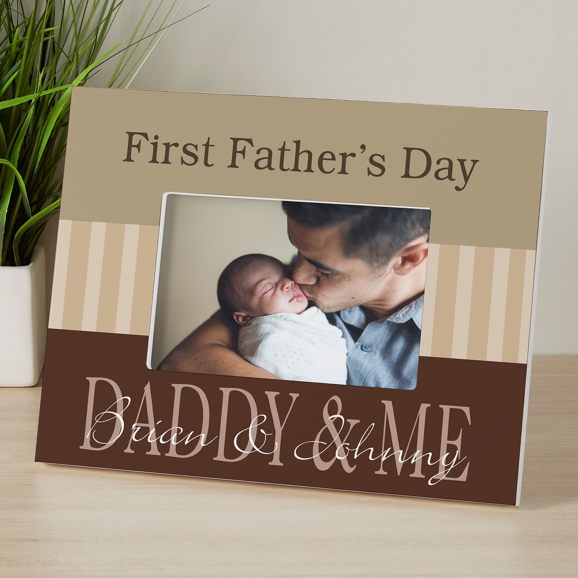 The first Father's day is a very special day for a new dad - commemorate the occasion with our Daddy & Me Personalized Frame. Your special message will be printed within our exclusive tonal, brown striped design; sure to put a smile on his face this Father's Day!