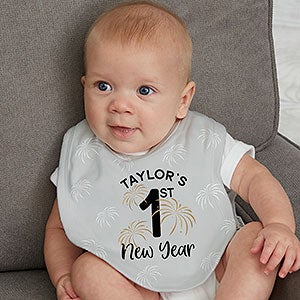 Make their first New Years a memorable one with our First New Years Personalized Baby Bib. Add the matching apparel to perfectly coordinate this New Years.