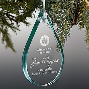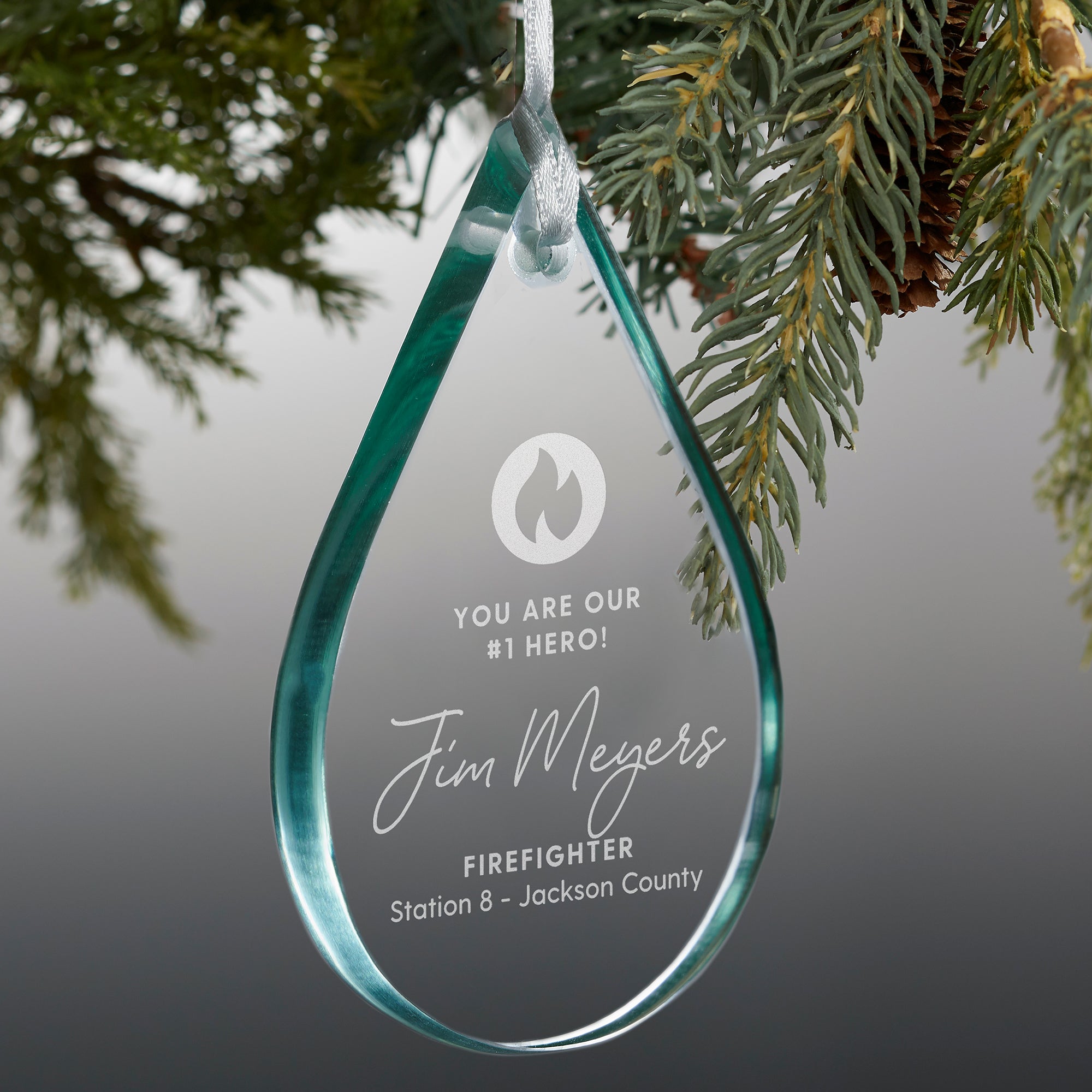 Honor your front line worker this Christmas by proudly displaying the First Responder Teardrop Engraved Glass Ornament.