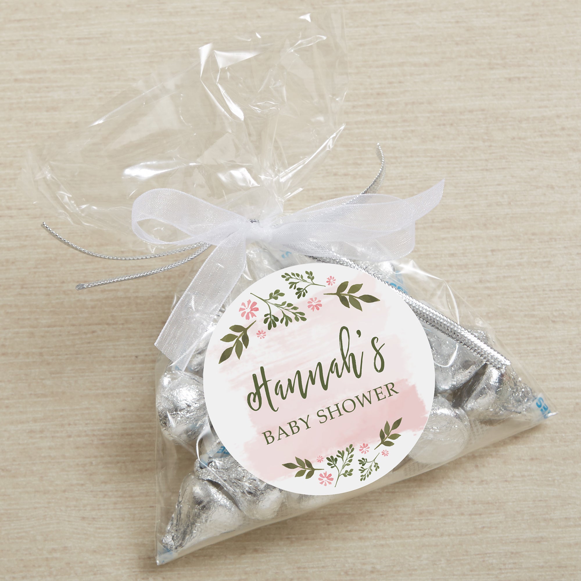 Add a personalized touch to your baby shower favors with the Floral Frame Baby Personalized Gift Stickers.
