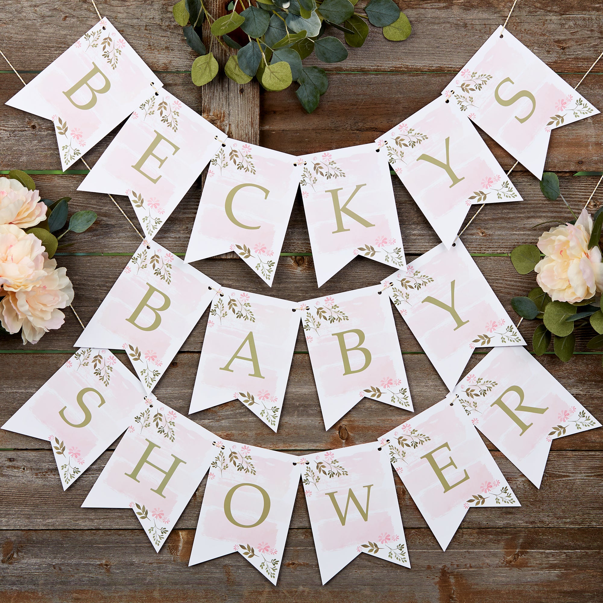 Floral Frame Personalized Baby Shower Bunting Banner