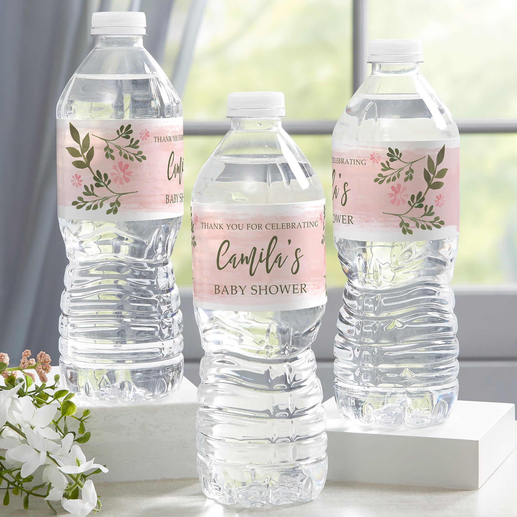Our Floral Frame Personalized Baby Shower Water Bottle Labels will add an elegant look to your baby shower. Featuring a pink floral design, these labels are the perfect way to thank your guests for celebrating your baby with you.