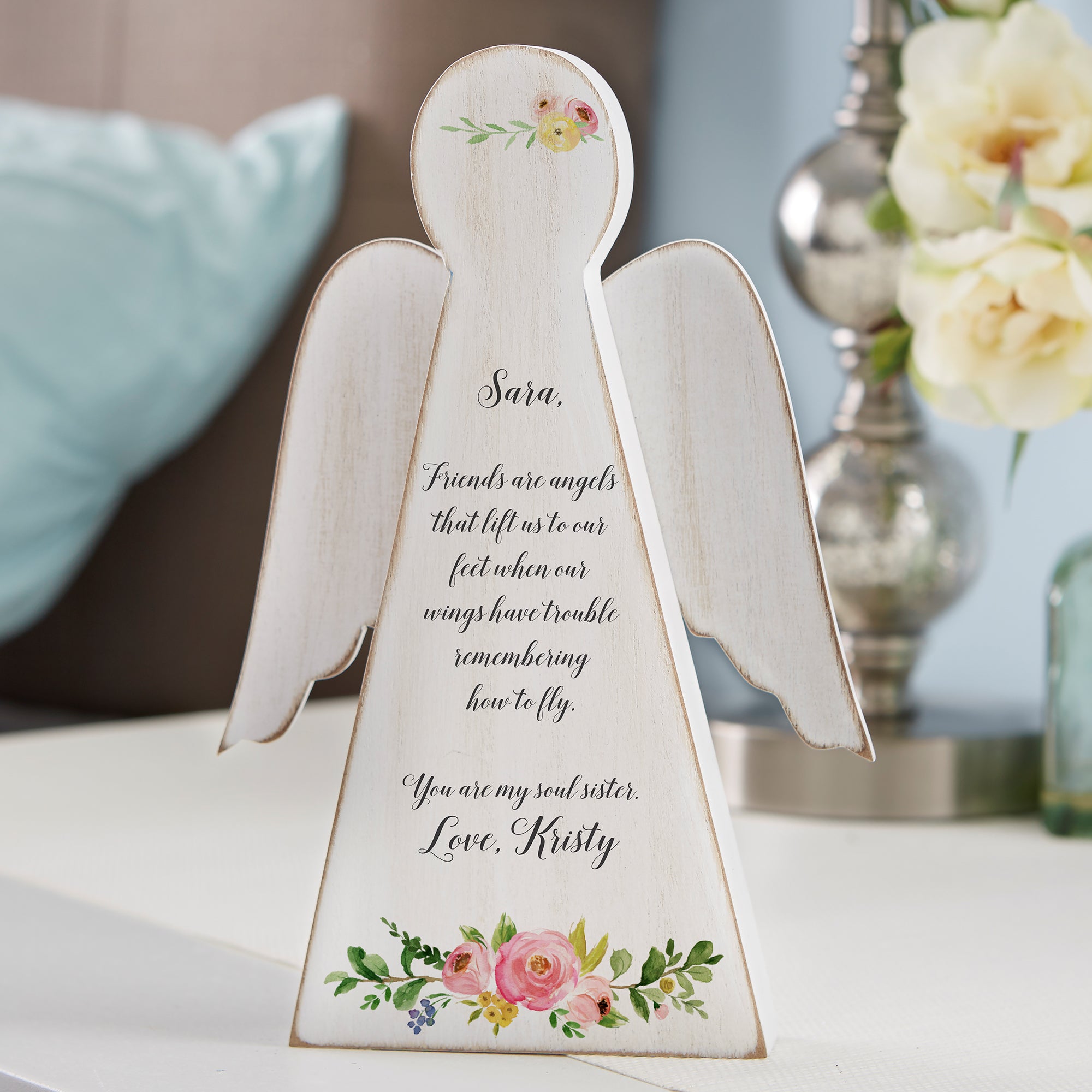 Let that special person in your life know what they mean to you with our Write Your Own Floral Friendship Personalized Wood Angel!