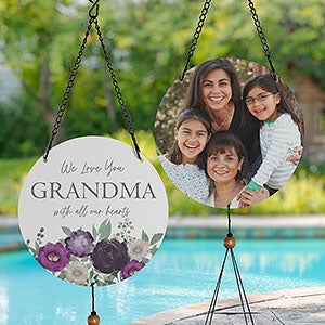 Let mom know how much she is loved with our Floral Love For Grandma Personalized Photo Wind Chimes. These chimes feature a color printed disc and a beautiful sound, making a perfect gift for Mother's Day or Grandparent's Day!