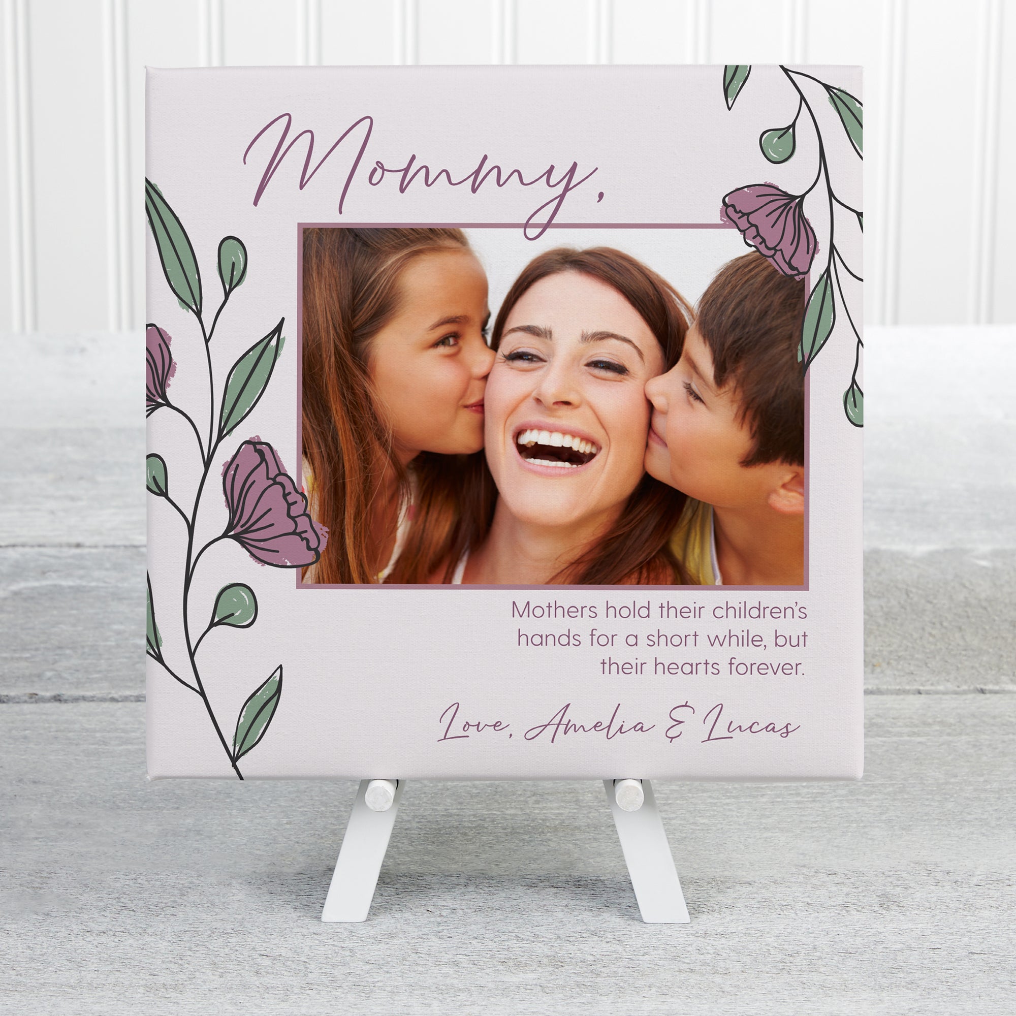 Let her know she is loved with our Floral Message for Mom Personalized Tabletop Canvas Print.