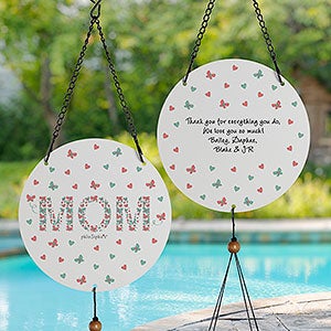 Our lovely Butterfly Mom philoSophie's® Personalized Wind Chimes turns a quiet breeze into a soothing, musical symphony! These chimes feature a color printed disc and a beautiful sound, making a perfect gift for Mother's Day!