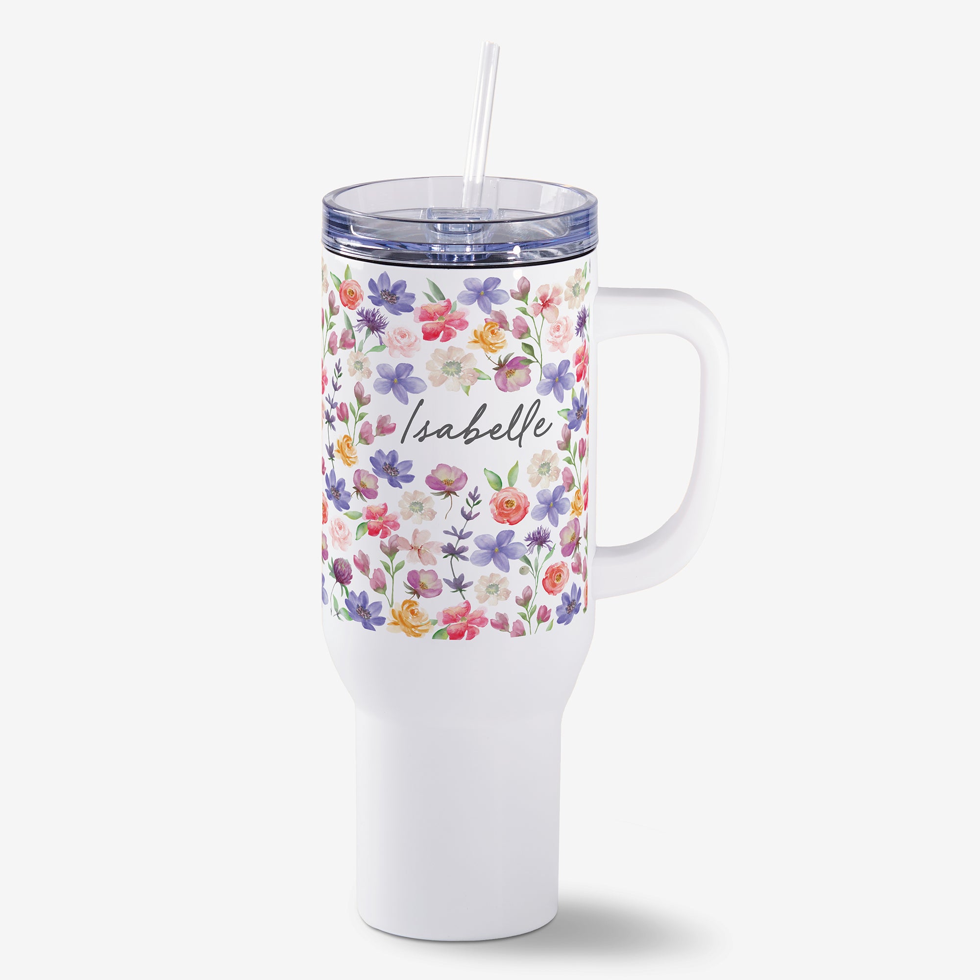 Stay refreshed and stylish with the Floral Pattern Name Personalized White 40oz. Tumbler. This sleek and durable tumbler is crafted from high-quality stainless steel, ensuring a long-lasting and healthy drinking experience. The double-wall vacuum insulation technology provides superior heat and cold retention.