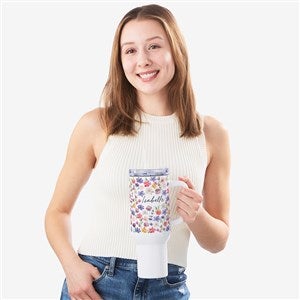 Floral Pattern Name Personalized White 40oz. Tumbler