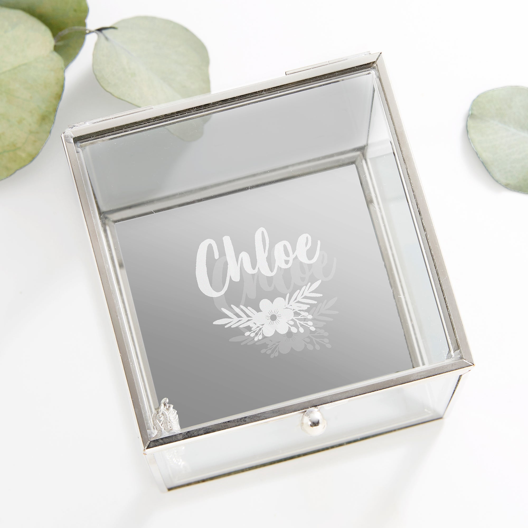 Floral Reflections Personalized Glass Jewelry Box