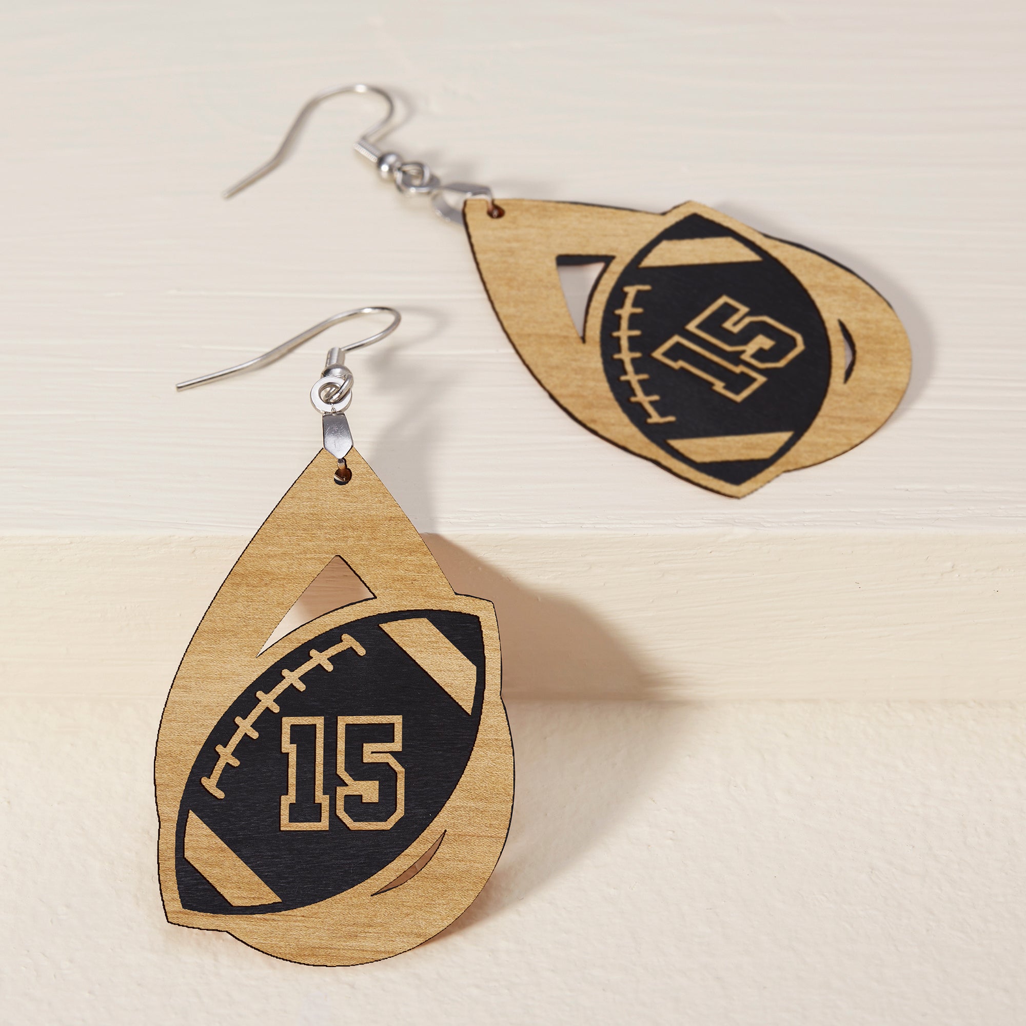 Score a style touchdown with our Football Personalized Wood Dangle Earrings. These earrings make the perfect accessory for tailgating, game day and much more!
