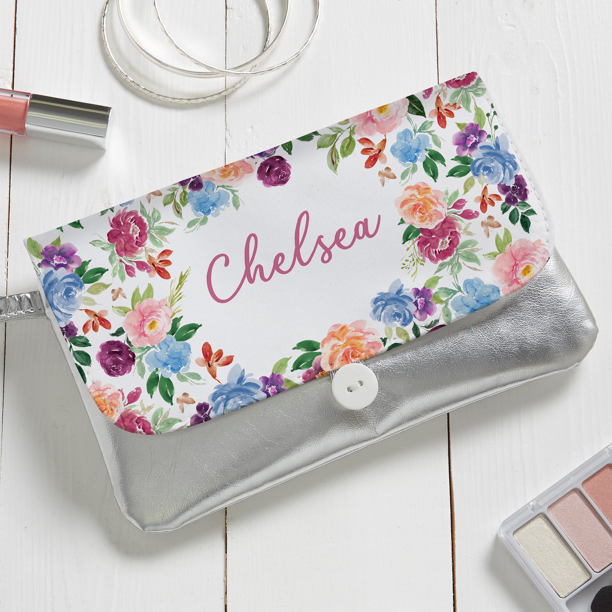 Perfect for touch-ups or to carry along her precious belongings, our Forever Floral Personalized Wristlet will be her favorite new accessory!