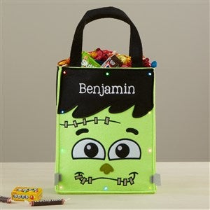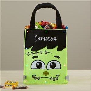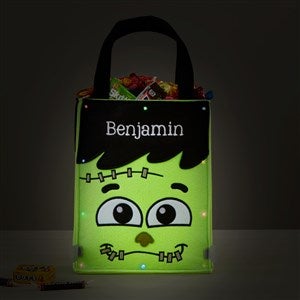 There's no trick to figuring out who owns these goodies, stashed in their very own personalized Frankie Embroidered Light Up Halloween Treat Bag.