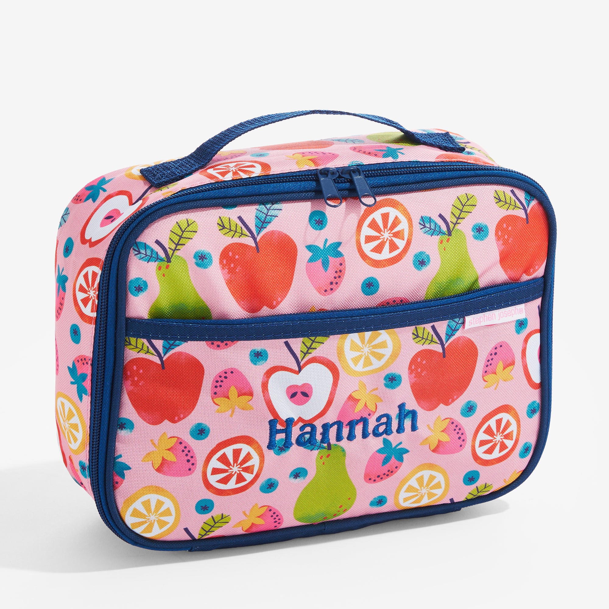 Lunchtime just got a whole lot sweeter with the Fruit Fusion Embroidered Lunch Bag by Stephen Joseph. Featuring a vibrant fruit print and personalized name embroidery, this lunchbox is as cheerful as it is practical—perfect for school, daycare, or picnics in the park.