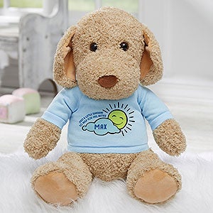 Brighten someone's day with our Get Well Personalized Plush Dog. His plump little tummy and super soft natural tone fur makes him perfect for snuggling and will make anyone smile!