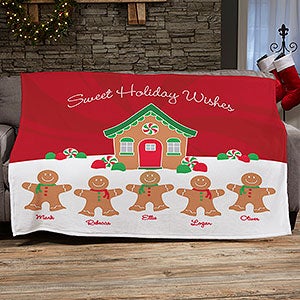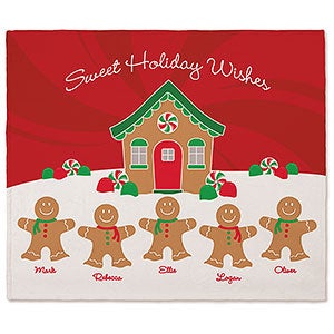 Add some holiday flare to your chair or sofa with our Gingerbread Family Personalized Blanket.