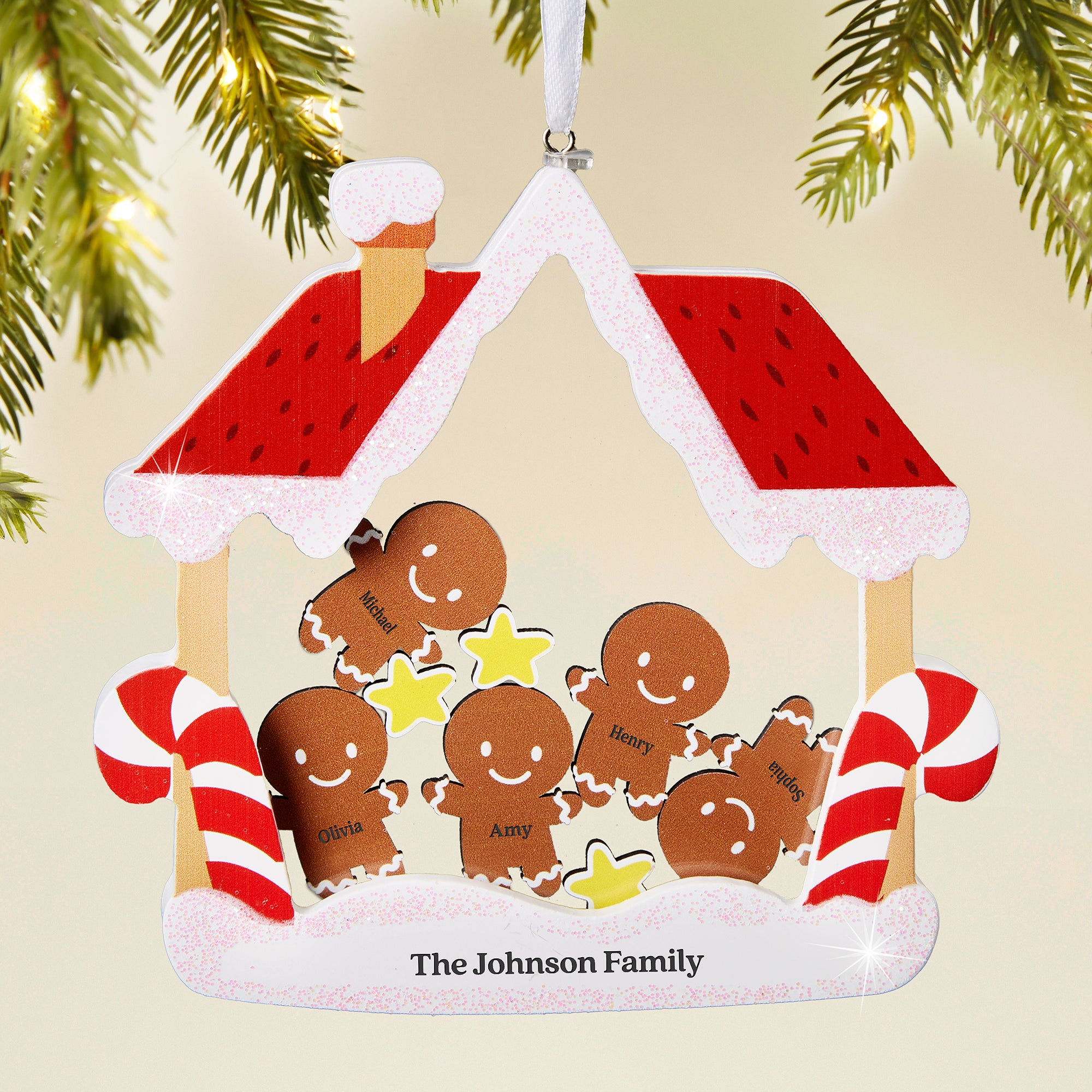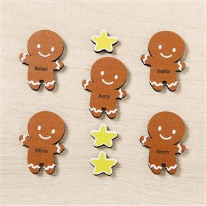 - Personalize with up to 5 names on the gingerbread people and 1 line of text