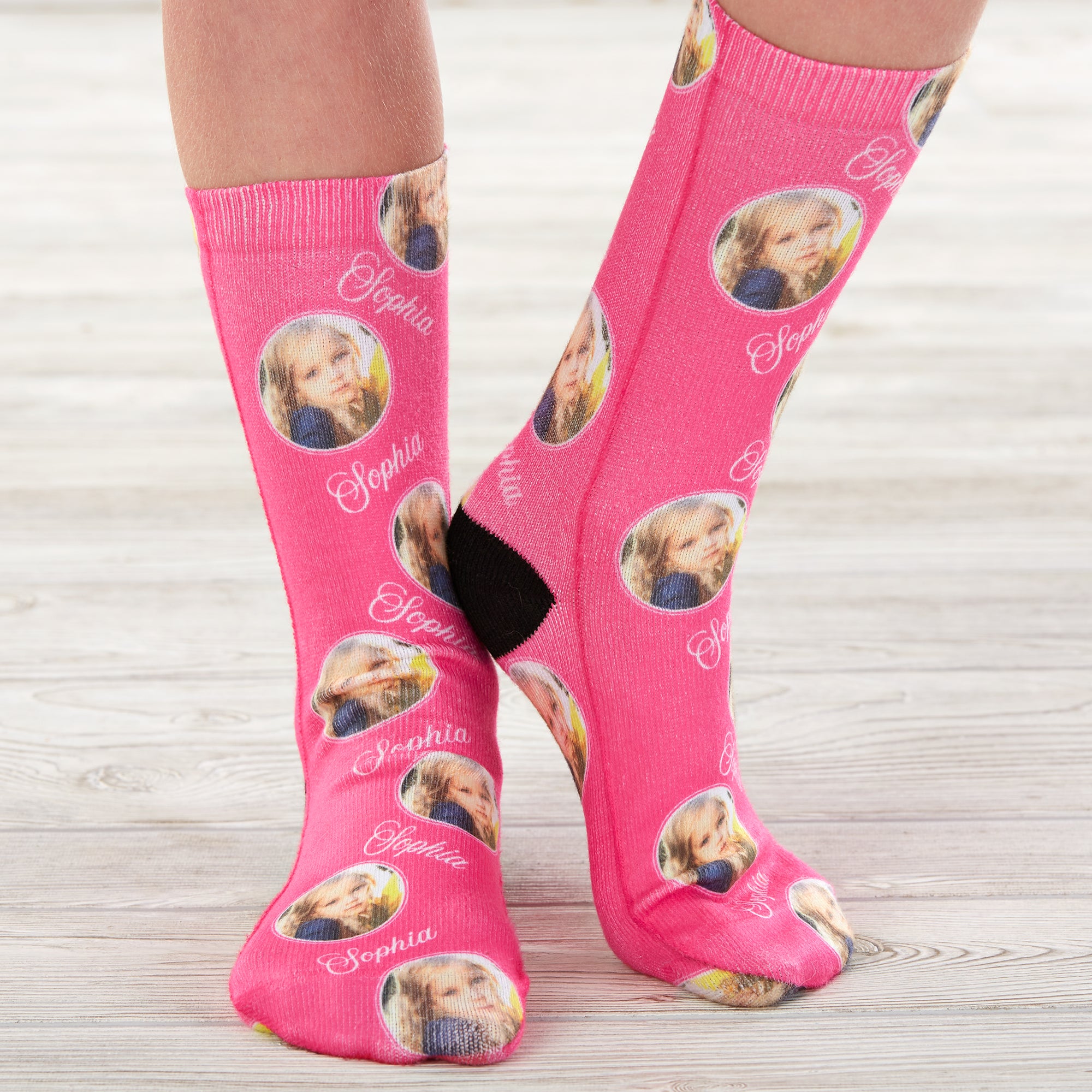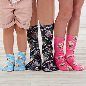 Give her a totally unique pair of socks with our Girl's Personalized Kids Photo Socks. A great pair of socks can add an eye-catching detail to any outfit.