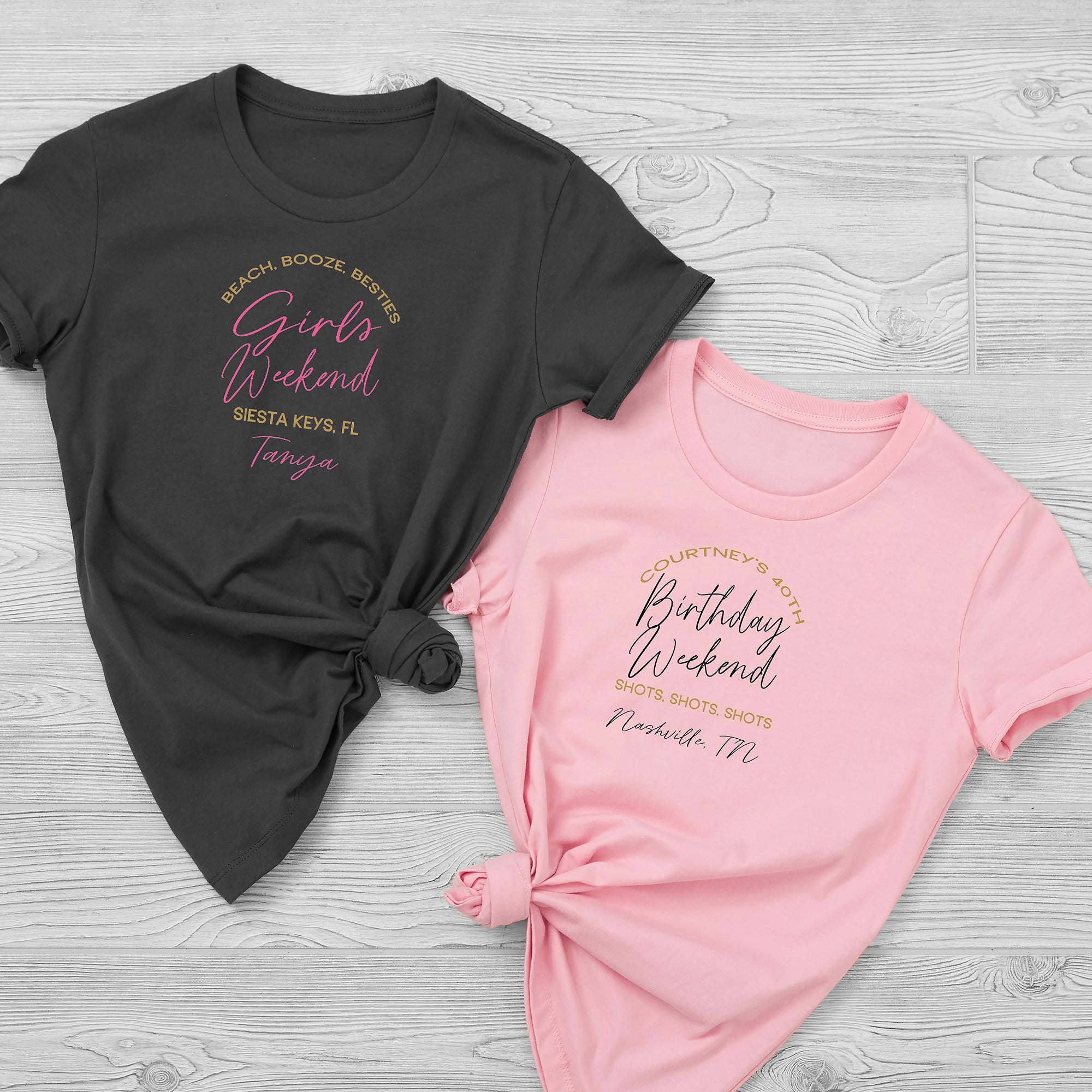 Grab your besties and hit the the town in our Girls Trip Personalized Ladies Shirts. Get one for everyone in the group, personalized in any color and your names!