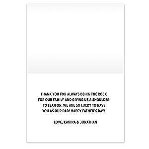 - Personalize with any 2 lines of text, any title and any 3 photos on the front of the card