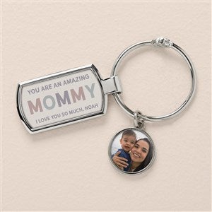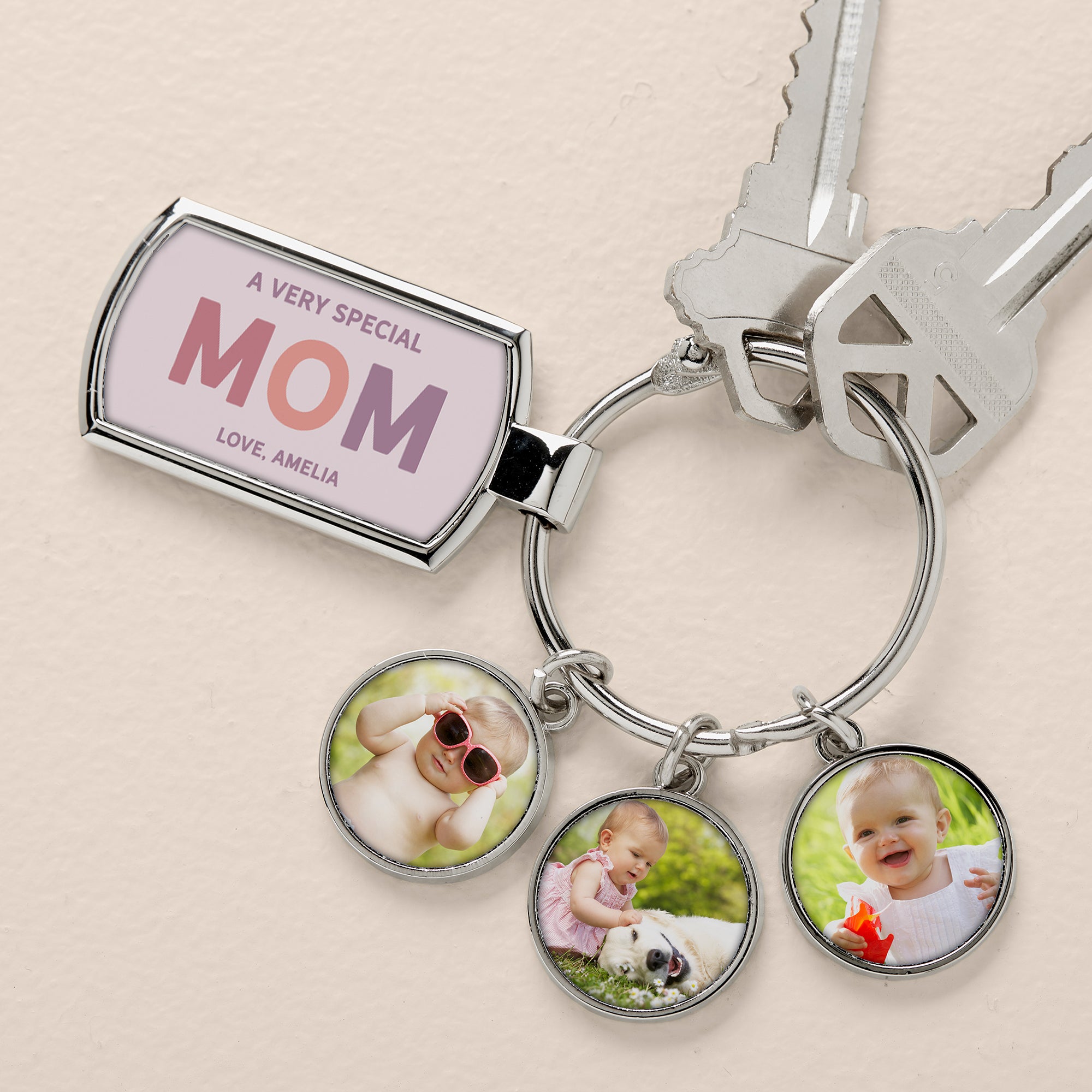 Keep all of her precious memories close with our Glad You're Our Mom Personalized Photo Charm Keychain!