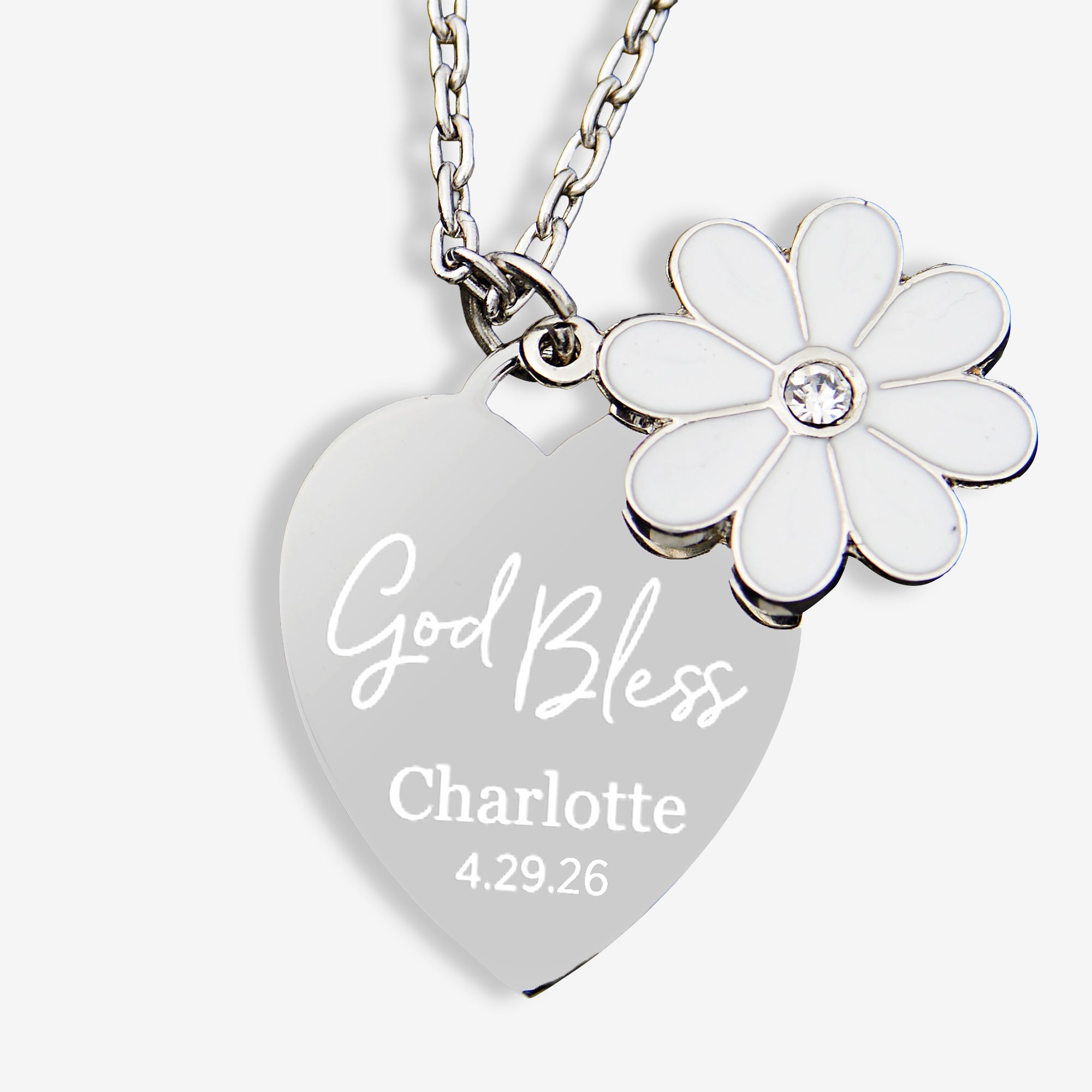 Give her something she'll cherish forever and hold onto for years to come with our God Bless Personalized Flower Heart Necklace.