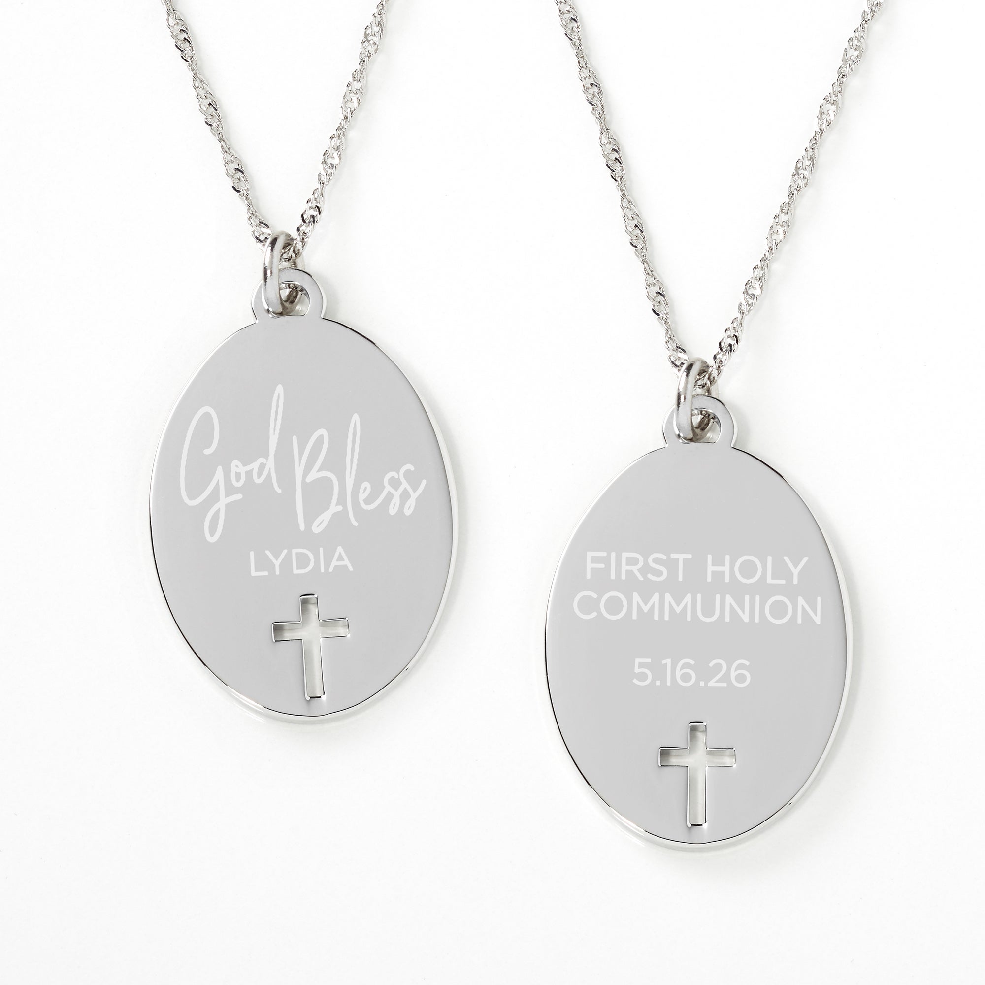 Create a keepsake they are sure to cherish with the God Bless Personalized Pendant Necklace, perfect for a Communion, or other commemorative religious event.