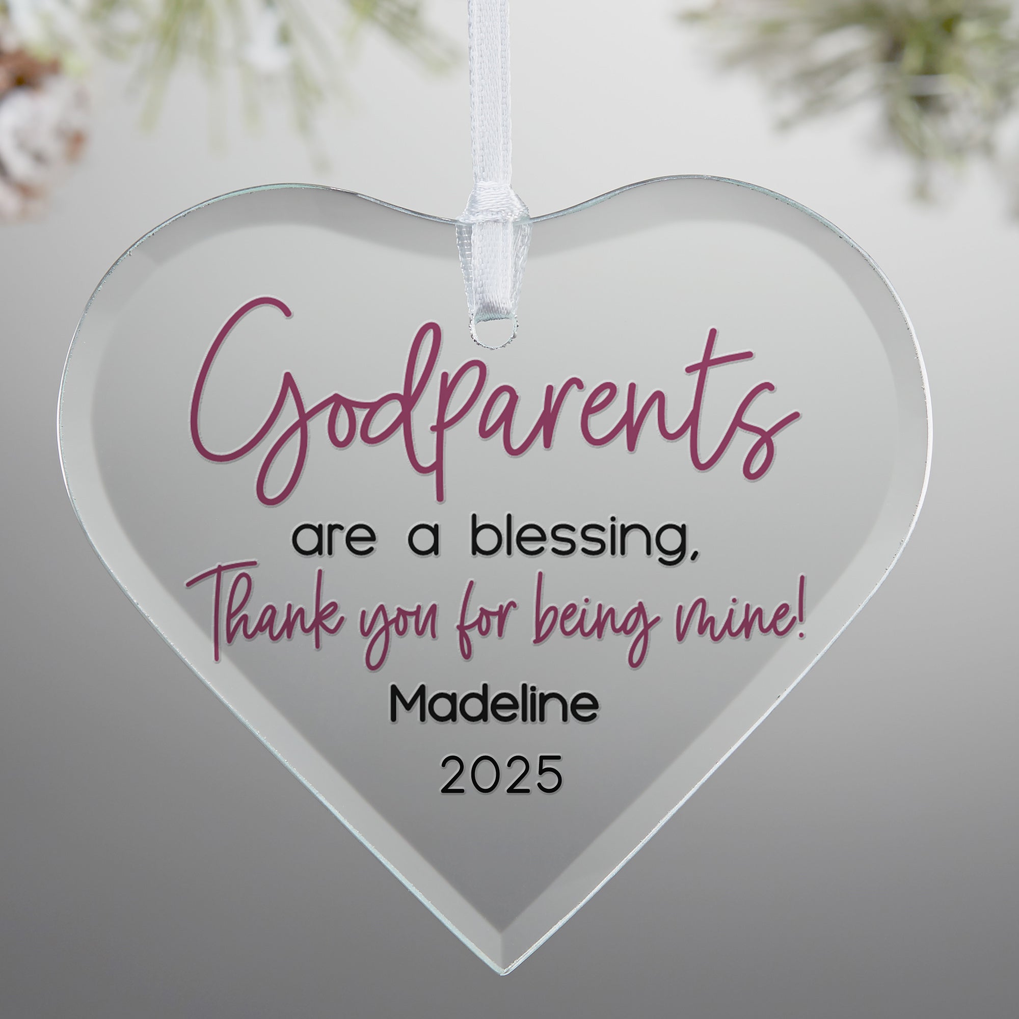 The Godparents Personalized Heart Glass Ornament is the perfect personalized Christmas ornament to let them know what a blessing they are.