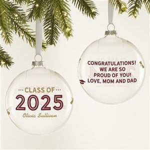 Celebrate their success whether it is grammar school, high school, or beyond with our Graduating Class Of Personalized Glass Bulb Ornament.