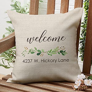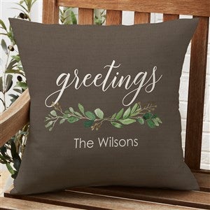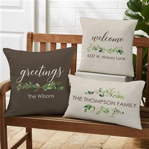 Add a simple, elegant touch to your porch or patio with our Greenery Welcome Personalized Outdoor Throw Pillow.