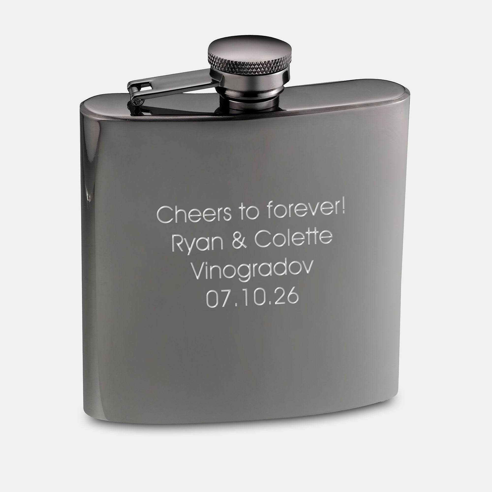 Our Gunmetal Flask makes a great gift for wedding parties, birthdays, and many other special occasions! We will engrave it with their name, a special date, or a thoughtful message.
