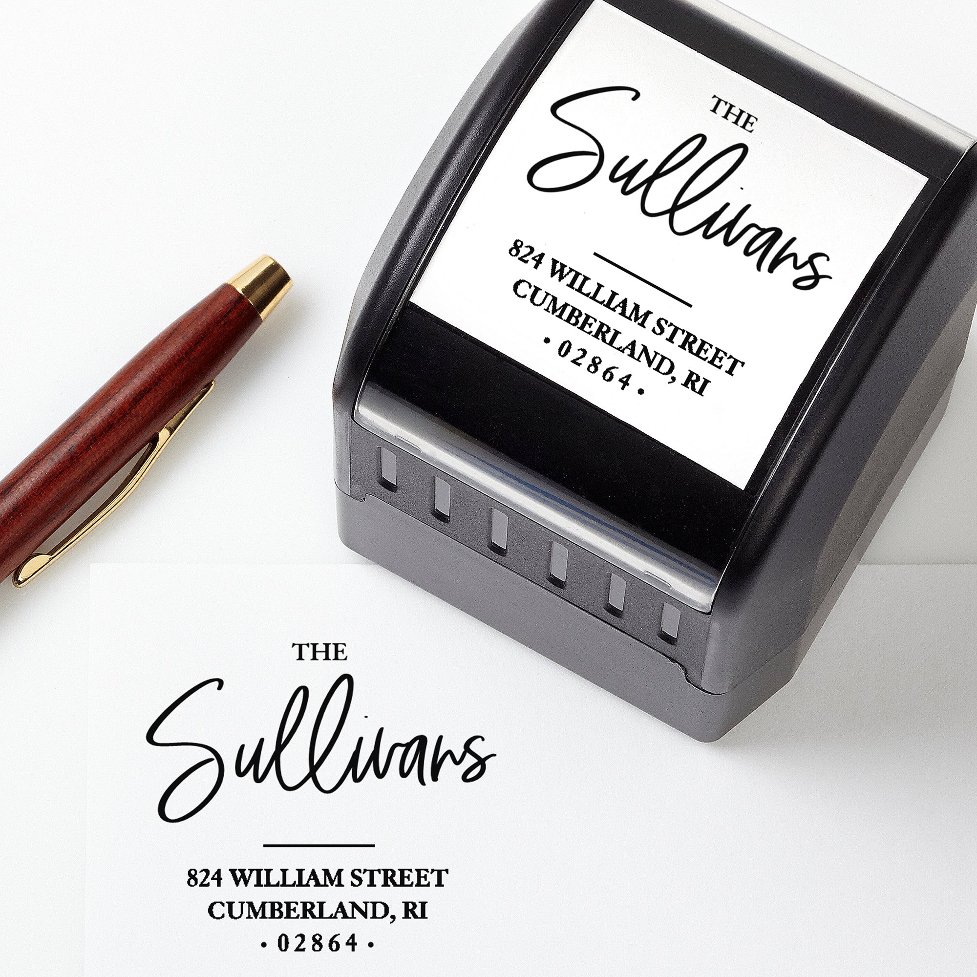 Add a personal touch to all your correspondence with our exclusive Hand Lettered Family Self-Inking Personalized Address Stamp.