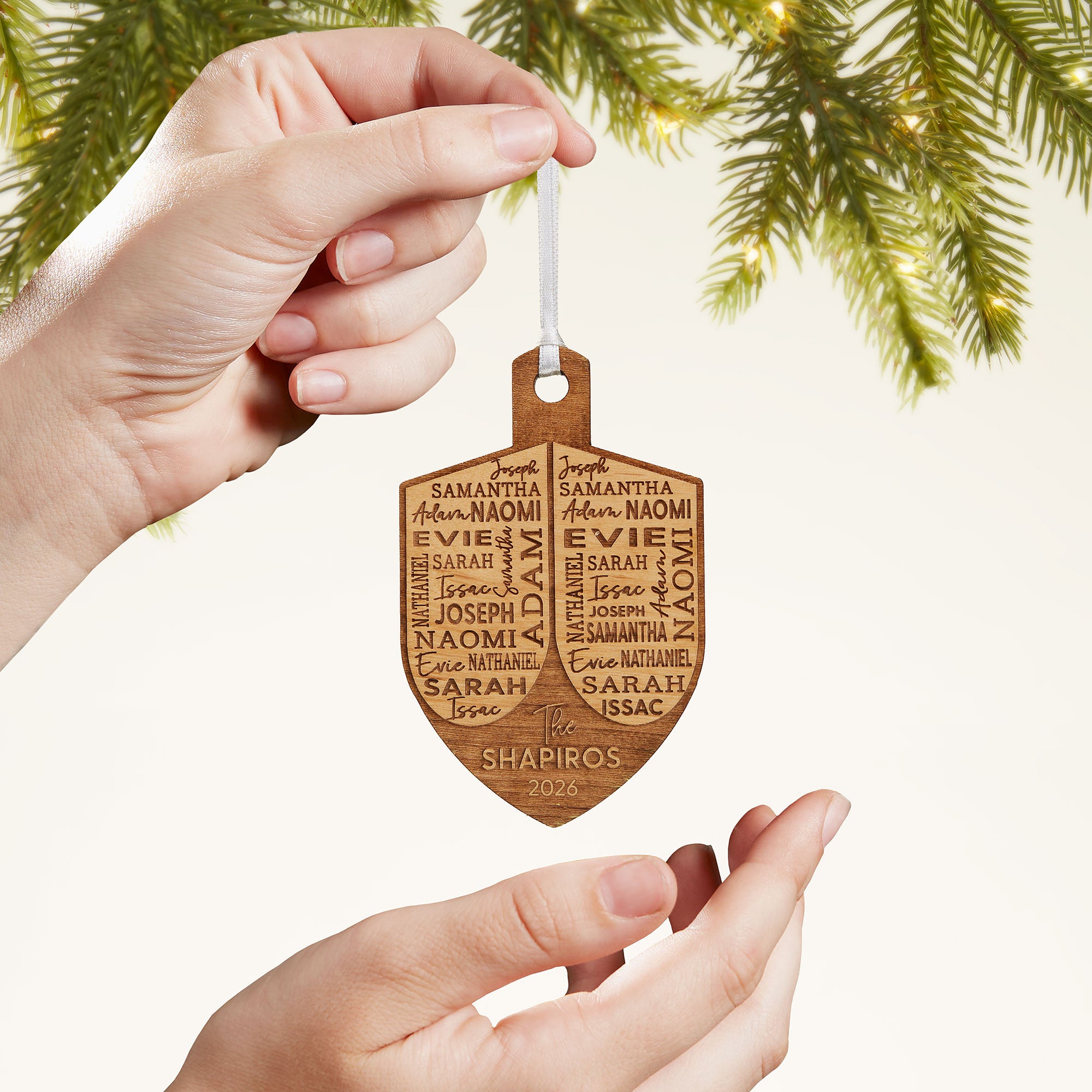 The Hannukah Dreidel Personalized Wood Ornament is a memorable and thoughtful way to celebrate the season of Hanukkah with your friends and family!