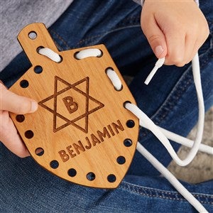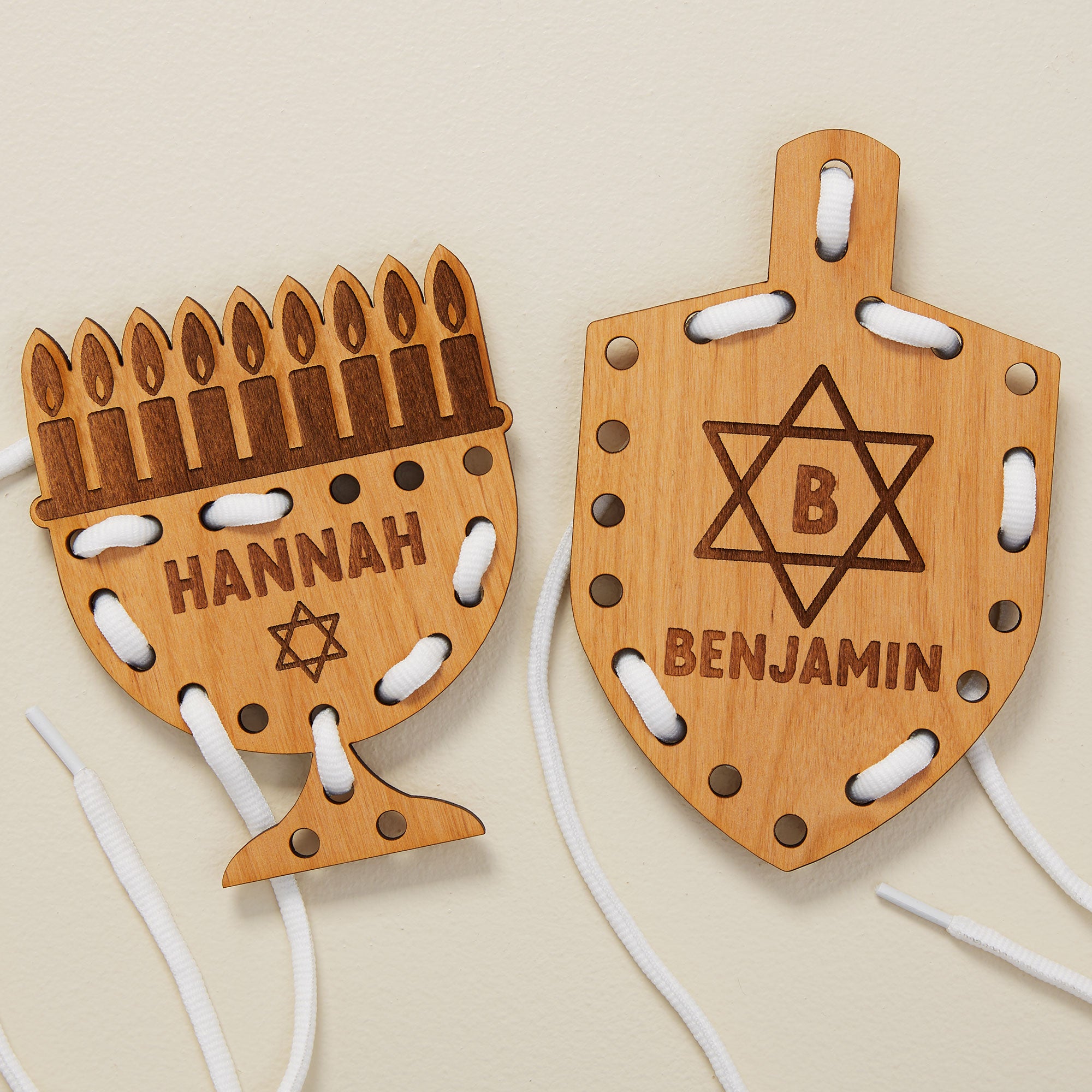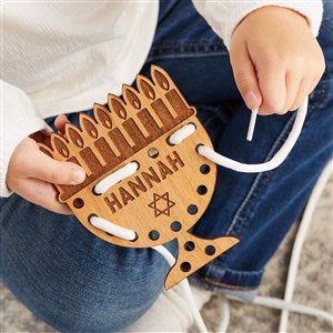 Give the little one in your life our fun Hanukkah Personalized Wooden Lacing Toy! The engaging and educational toy is perfect for developing motor skills while celebrating Hanukkah.