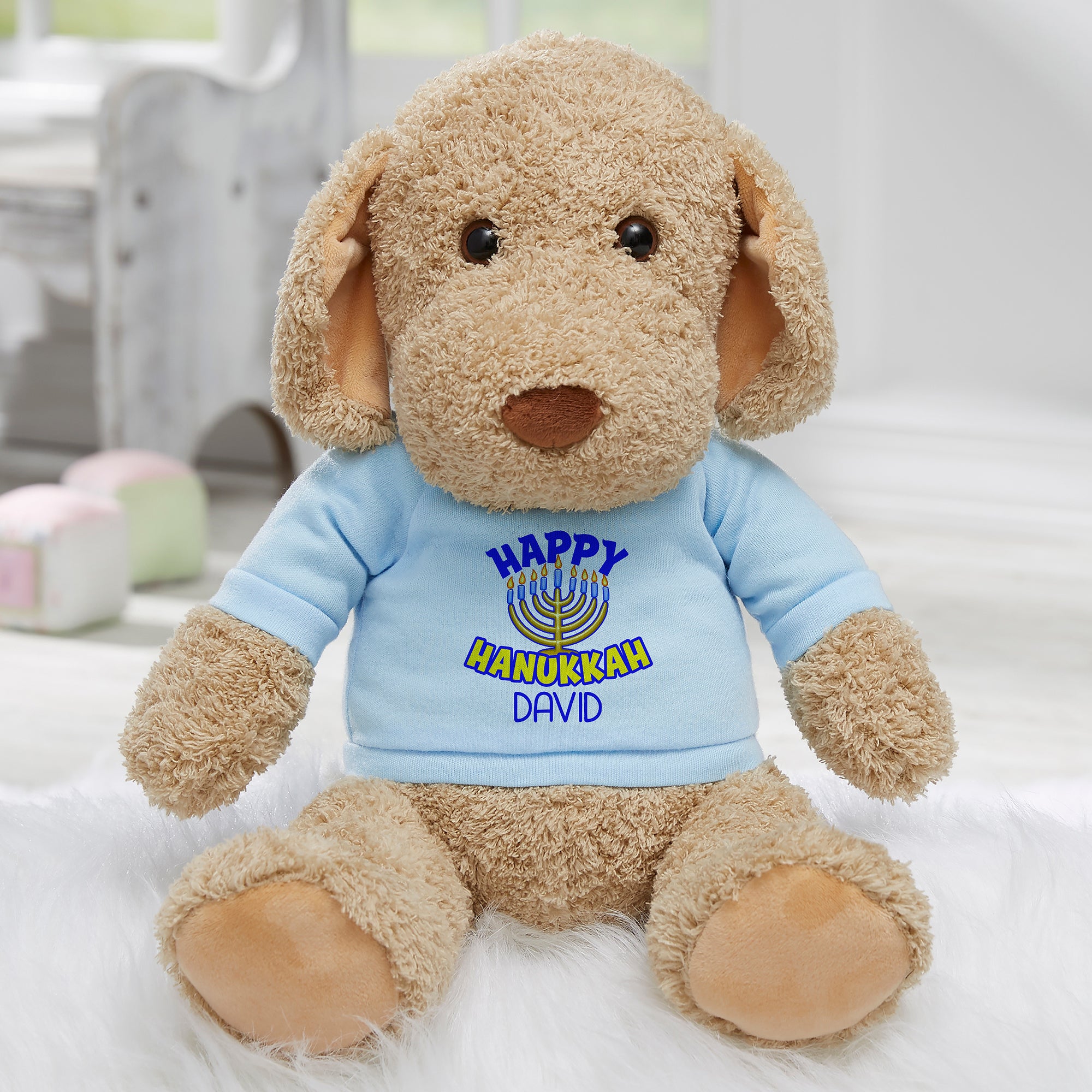 Create a playful, yet meaningful gift this Hanukkah season with the Happy Hanukkah Personalized Plush Dog. His plump little tummy and super soft natural tone fur makes him perfect for snuggling.