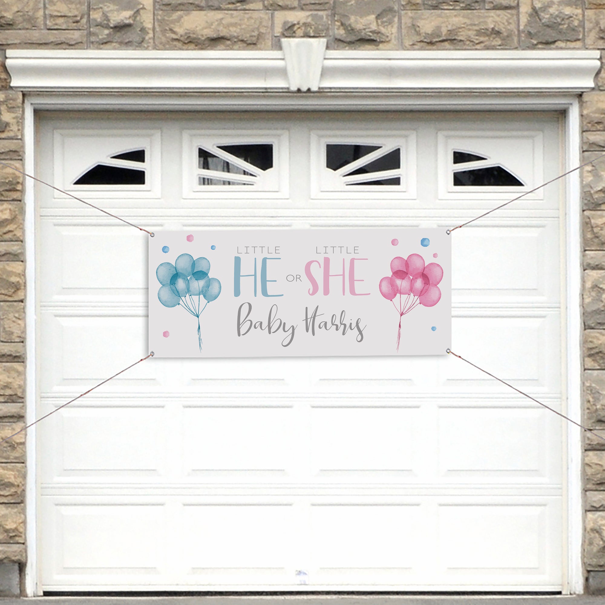 He or She Balloons Personalized Gender Reveal Banner