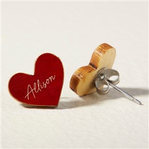 Heart & Circle Personalized Wood Stud Earrings