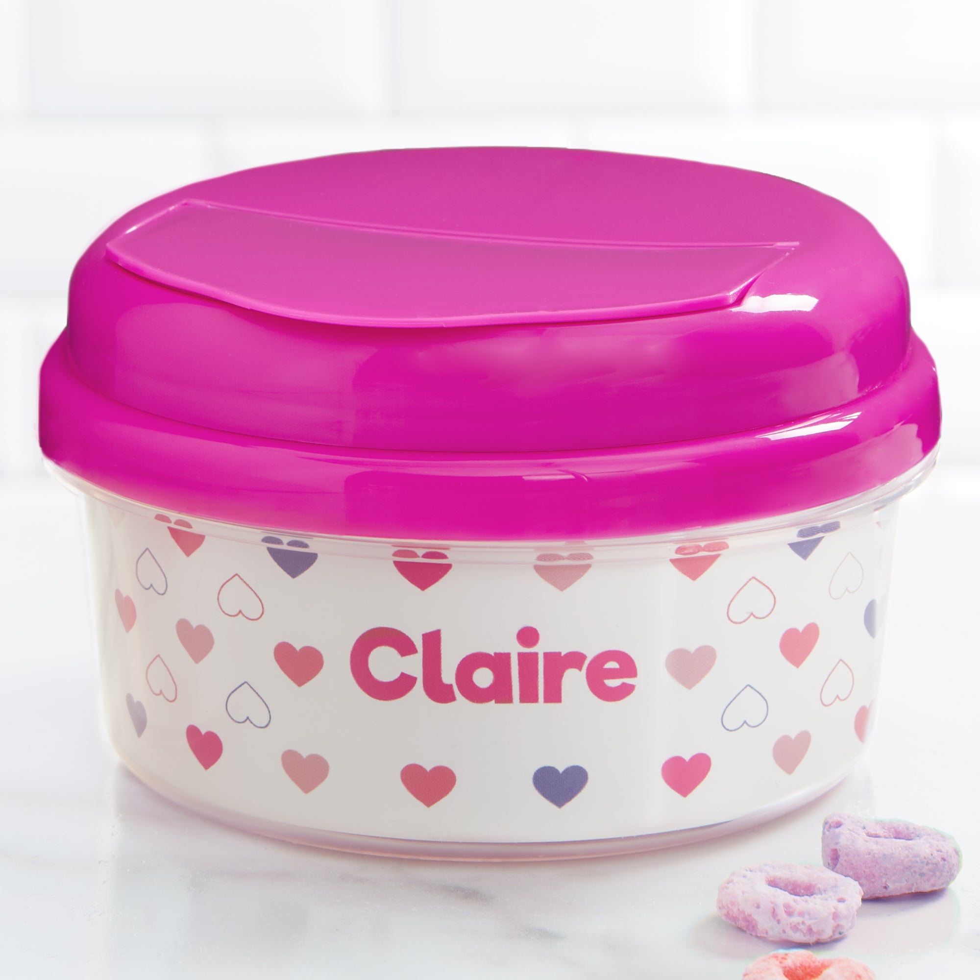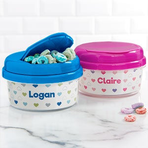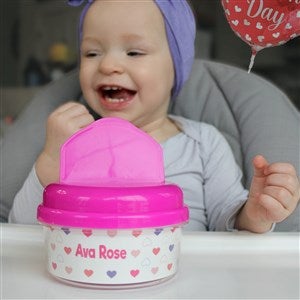 Now little ones can snack in personalized style with our Hearts Personalized Toddler 12 oz. Snack Cup. Perfect for car rides, daycare and much more. Makes for an adorable newborn gift featuring little one's name!