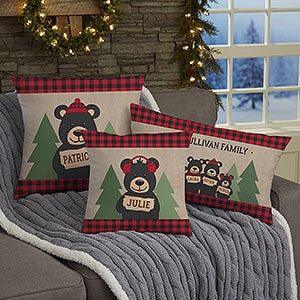 Holiday Bear Family Personalized Christmas Throw Pillow