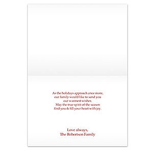 Spread holiday cheer this Season by sending customized wishes to your friends and family with this traditional design that is sure to warm the recipients heart.