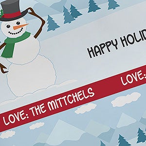 - Personalize with any name or family name within the snowman landscape pattern printed on pre-folded sheets