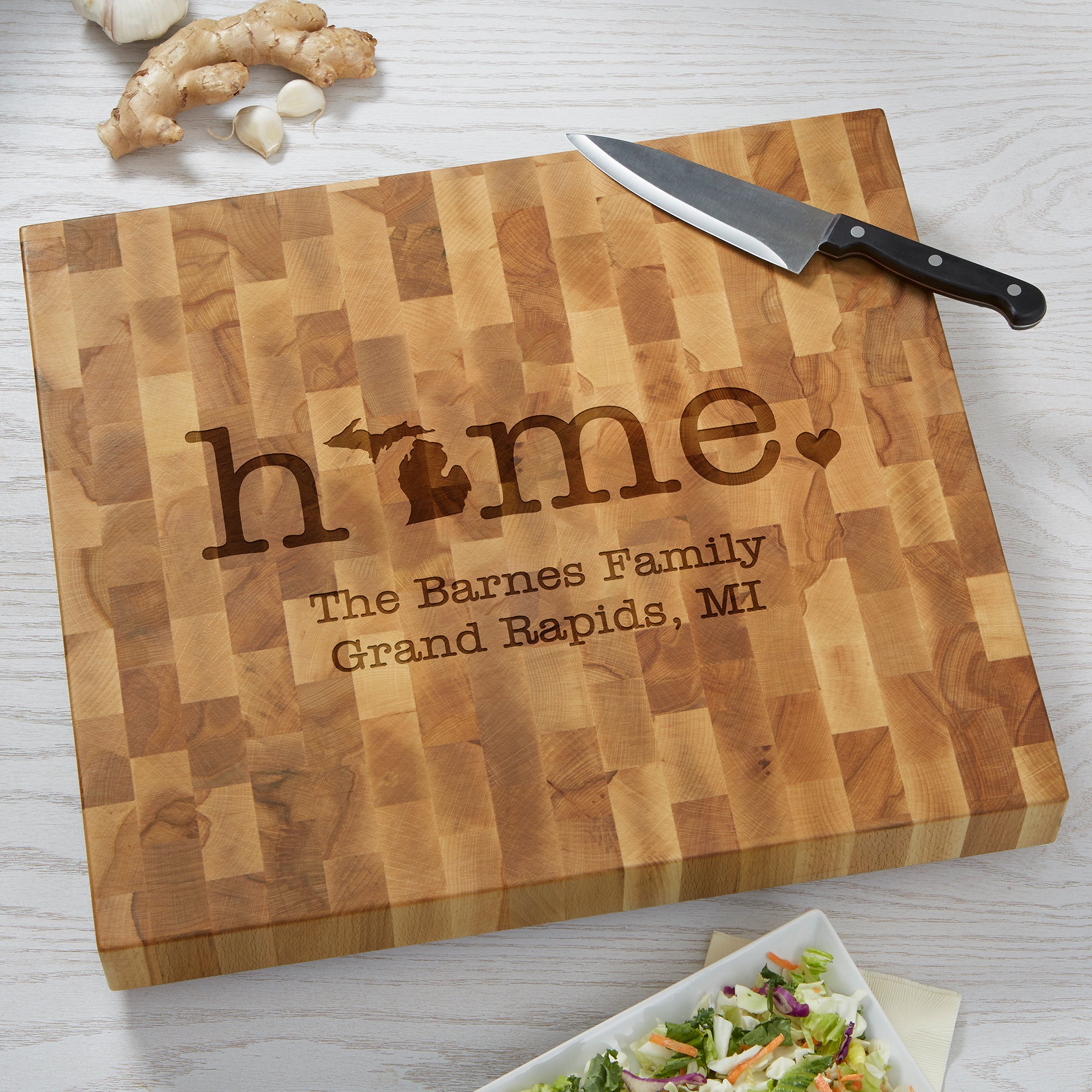 The Home State Personalized Butcher Block Cutting Board is a practical and decorative piece for any kitchen.