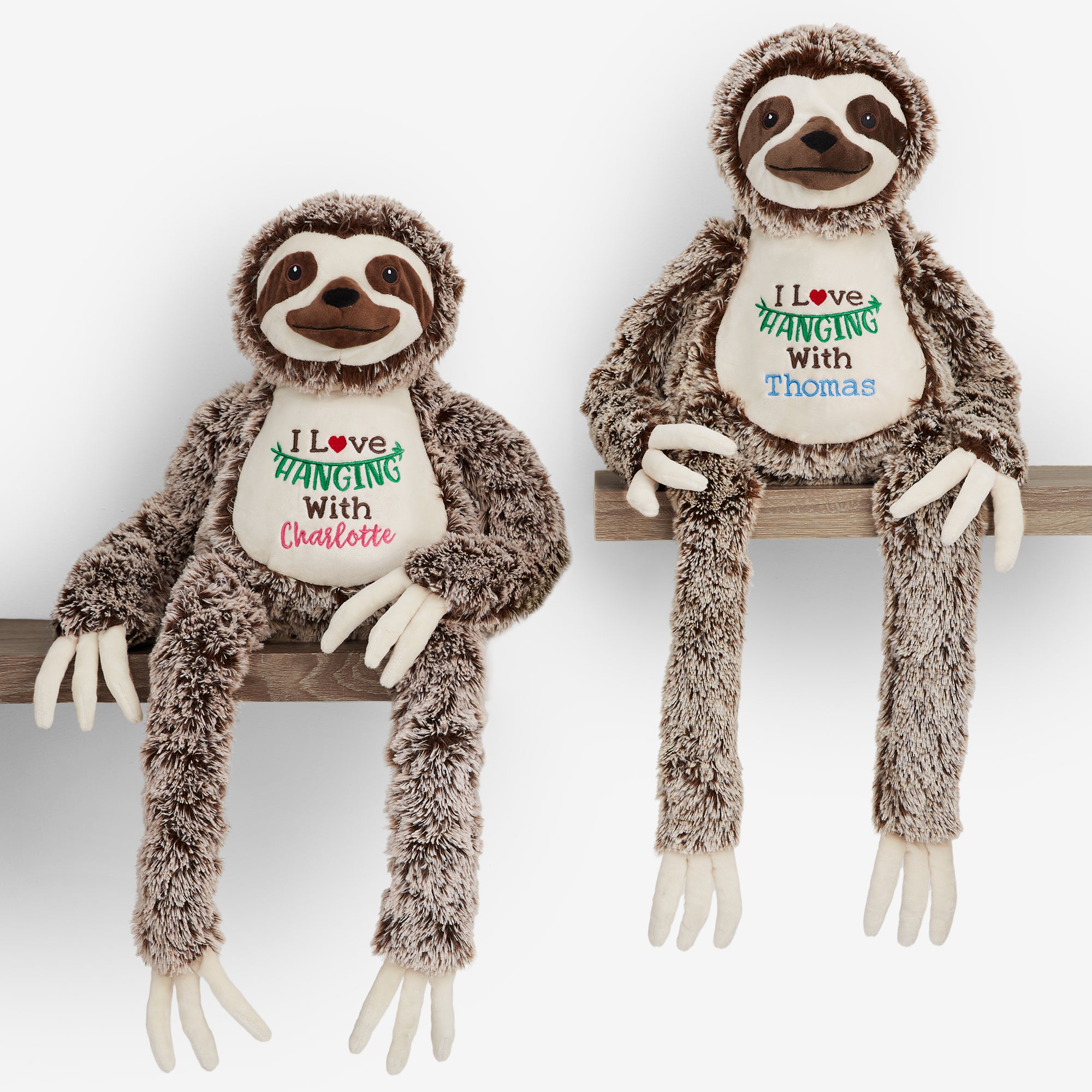 The I Love Hanging With You Personalized Long Legged Sloth Stuffed Animal is perfect for lazy snuggles. Featuring the embroidered phrase, "I Love Hanging With You", this punny sloth buddy is a great gift.