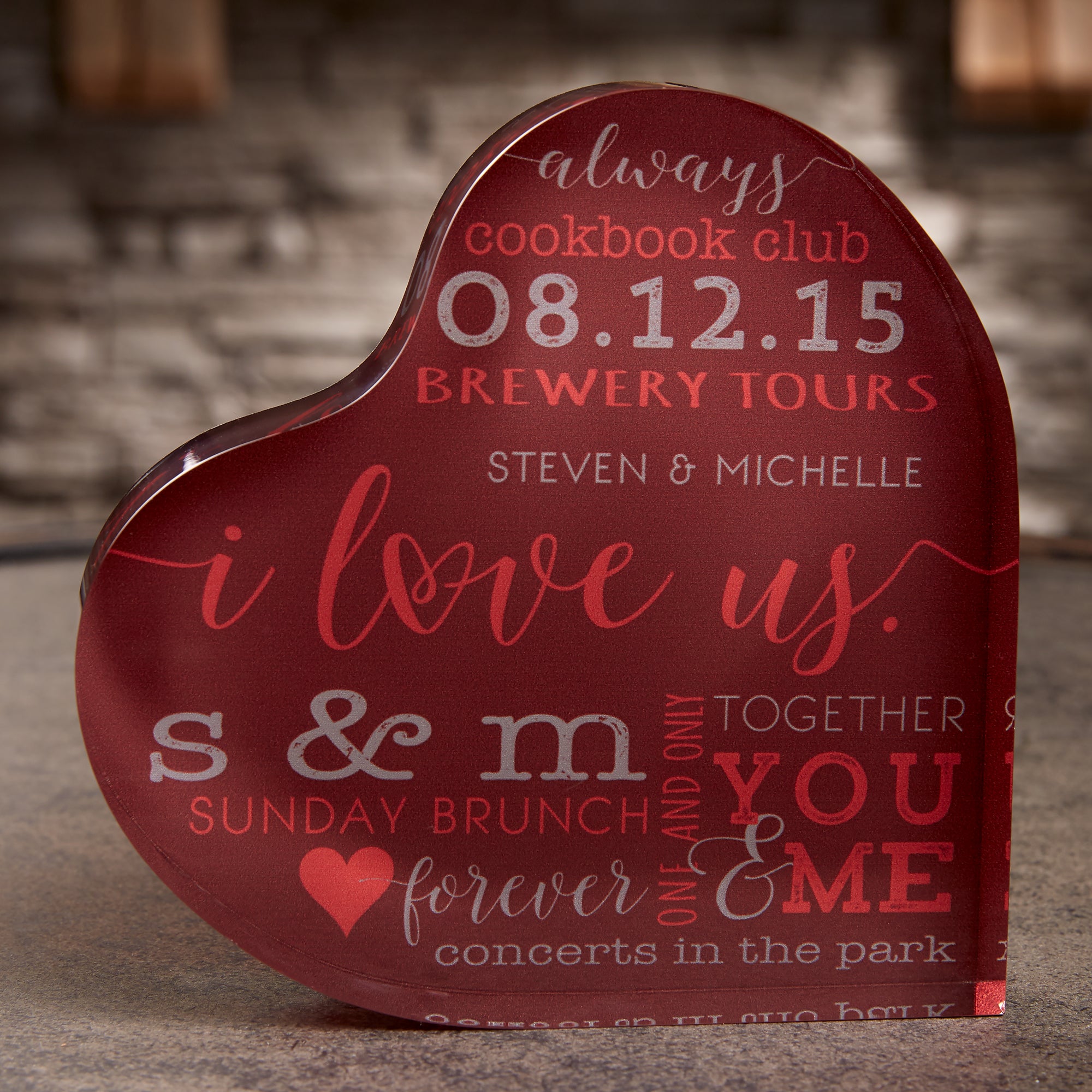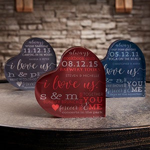 Decorate your home with a personal sentiment using our exclusive I Love Us Personalized Colored Heart Keepsake.