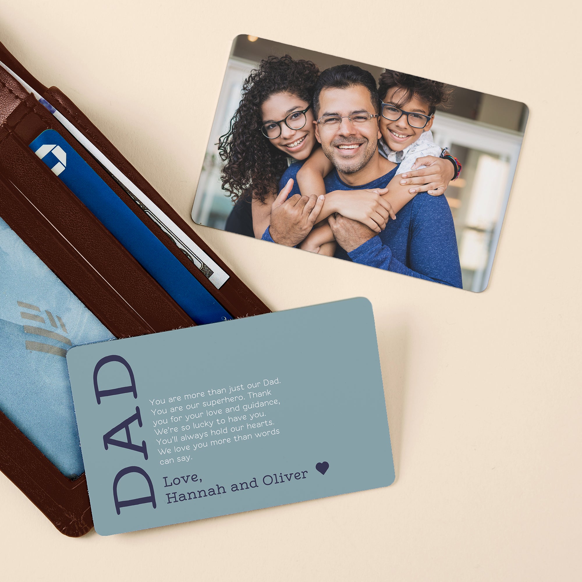 Show Dad how grateful you are for him with our I Love You Dad Personalized Photo Metal Wallet Card.