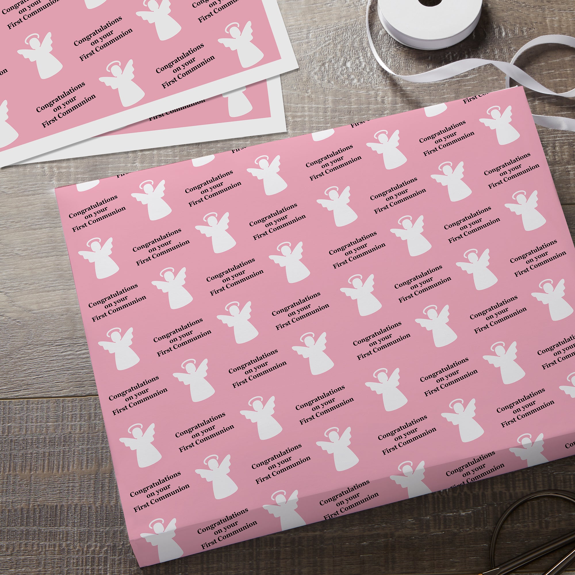 Add a personalized touch to any gift with our Step & Repeat Personalized Holy Cross Wrapping Paper. This paper is fully customizable with colors, icons and text; a perfect addition to any Communion gift!