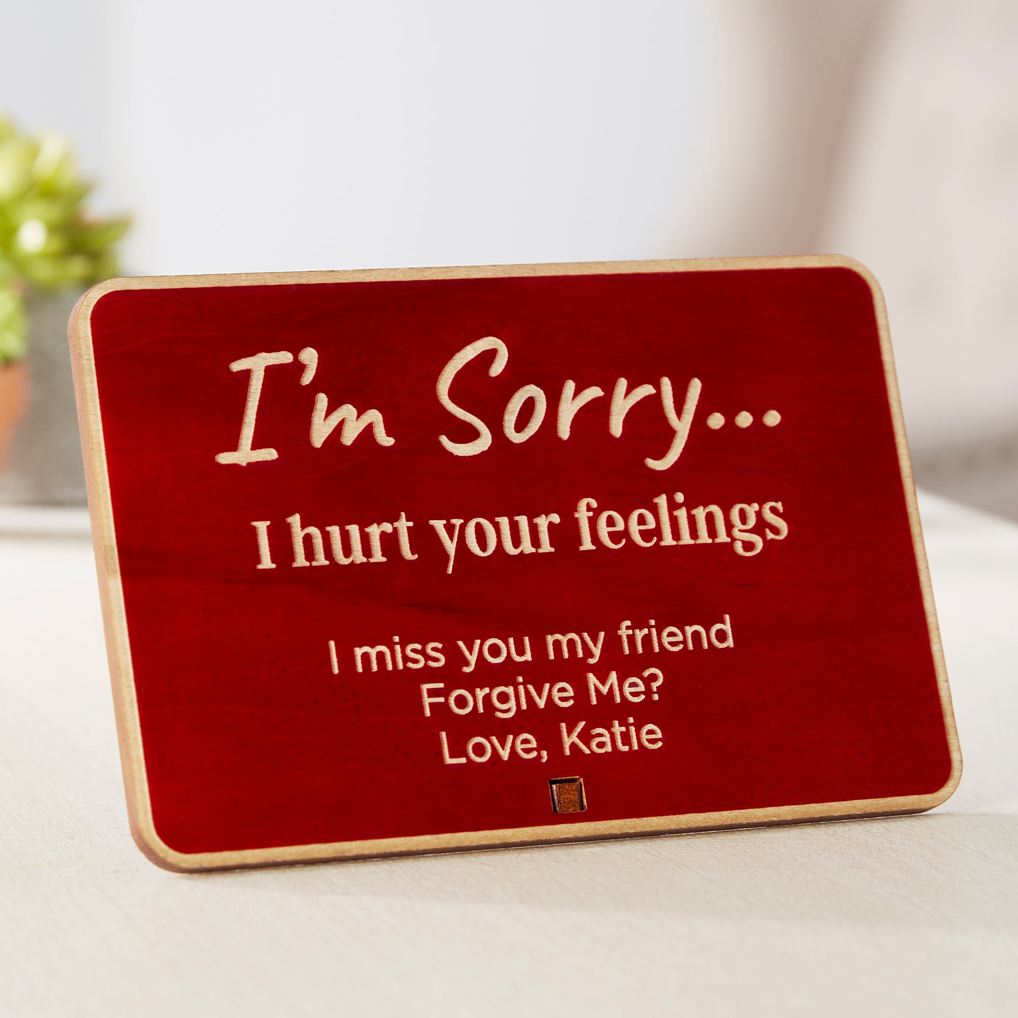 Apologize to someone special with our I'm Sorry… Personalized Wood Postcard. Add special message to create a special gift that expresses your heartfelt sentiment.