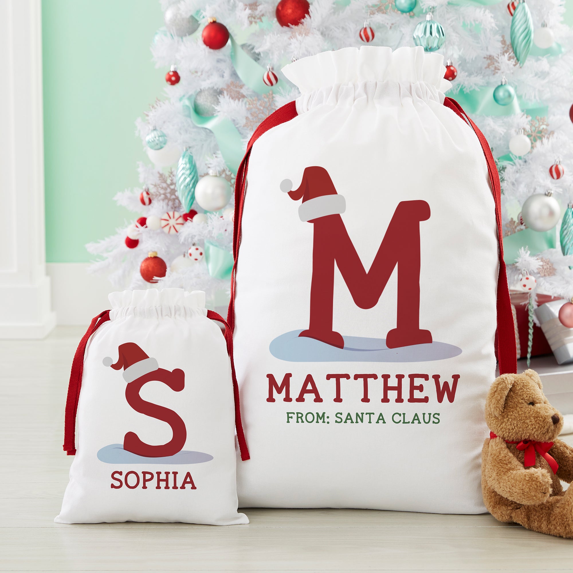 Initially Santa Personalized Christmas Canvas Drawstring Santa Sack