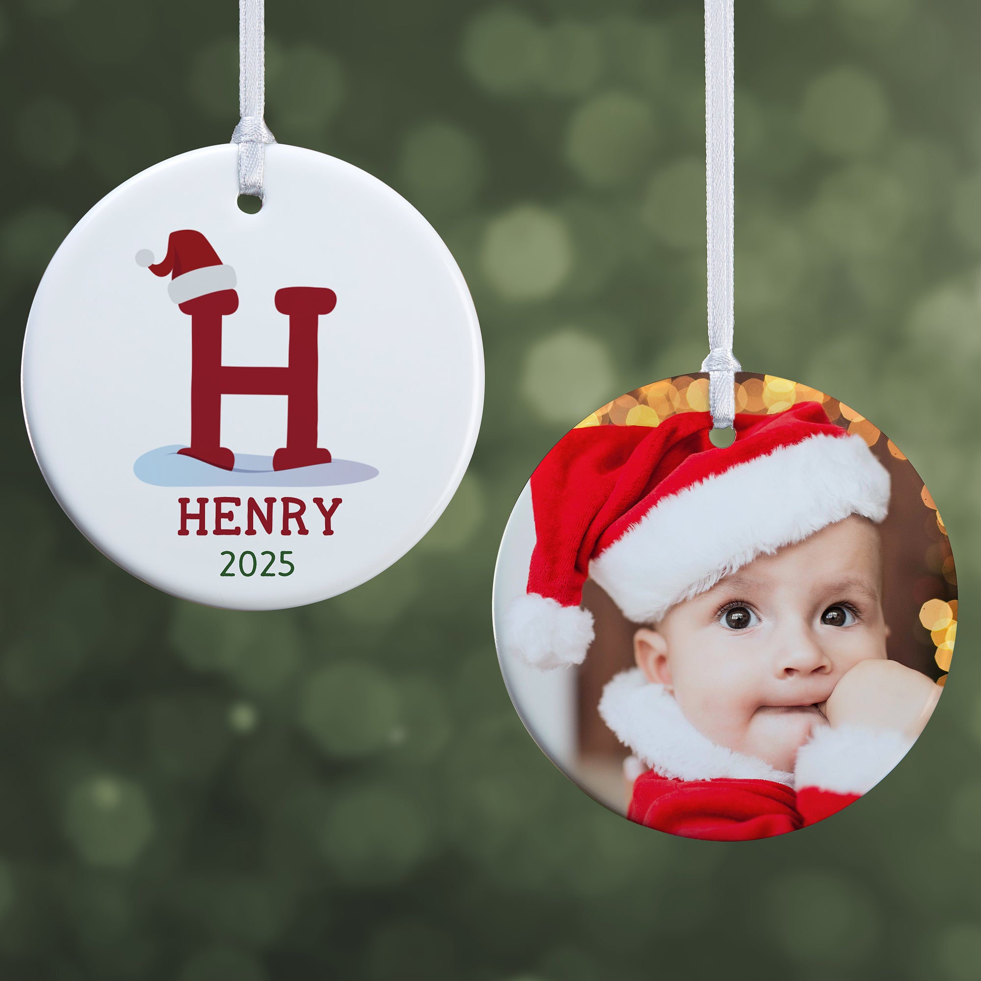 Display this Initially Santa Personalized Ornament on your tree this holiday season. Makes a perfect keepsake you can look back on every Christmas.